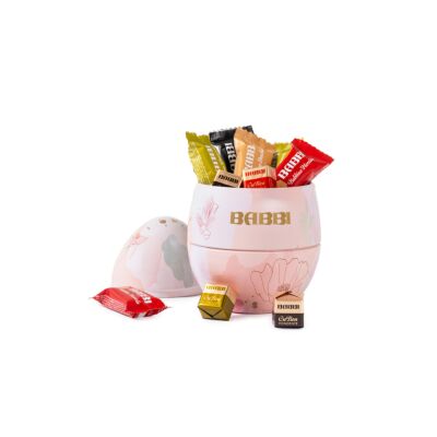 Originali ed eleganti Uova di Pasqua in metallo con all'interno una golosa sorpresa tutta da gustare: 10 prelibati Babbini e 8 CuBon in gusti assortiti, una vera delizia!